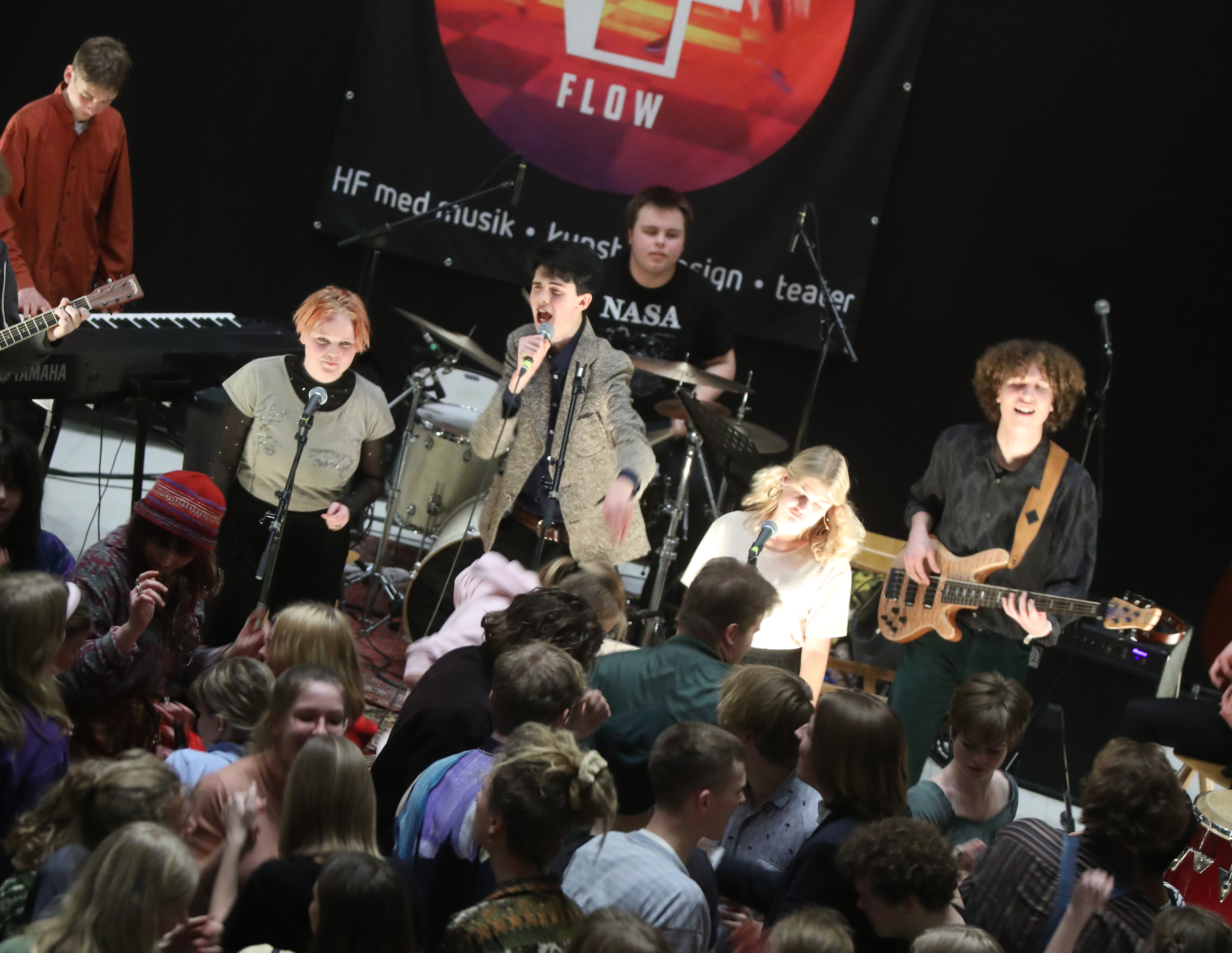 På FLOW MUSIK kommer du til at lære musikkens sprog grundigt at kende; det skriftlige, det mundtlige og så selvfølgelig på dit instrument. “The sky is the limit”, du kan blive lige så god som talent og øve-disciplin rækker, for vi har til enhver tid en lærer, der kan udfordre dig. Vi udfordrer dig også til at skabe din egen musik sammen med andre, til at lære at spille nye genrer og indgå i nye fællesskaber.